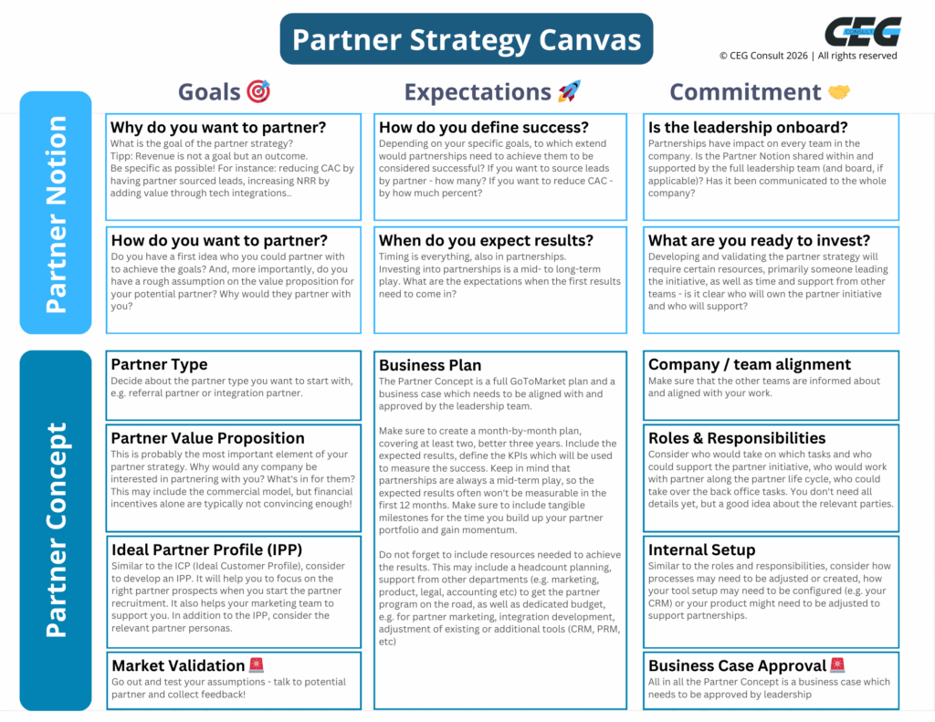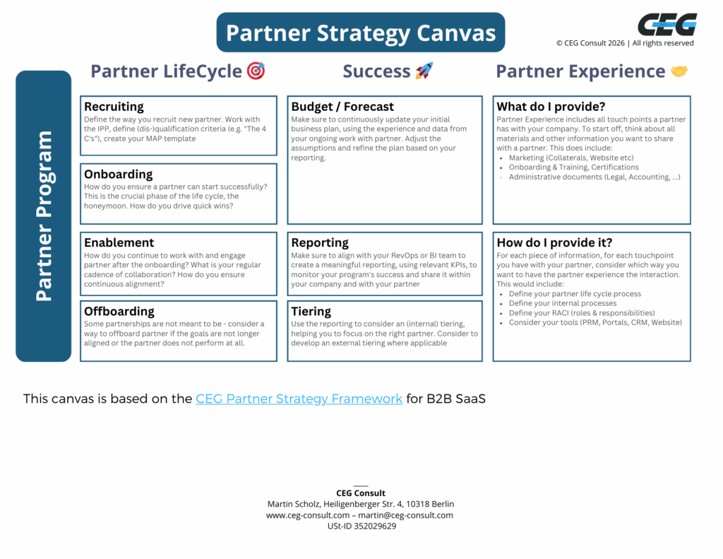 This canvas is based on the CEG Partner Strategy Framework for developing a partner program for B2B SaaS companies.